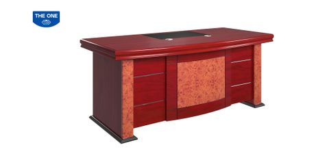 Bàn lãnh đạo sơn PU mặt lượn cong, có tấm PVC trang trí.