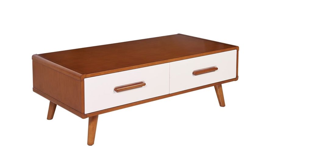 Bàn sofa có hai ngăn kéo sử dụng chất liệu Veneer kết hợp chân bằng gỗ tự nhiên.