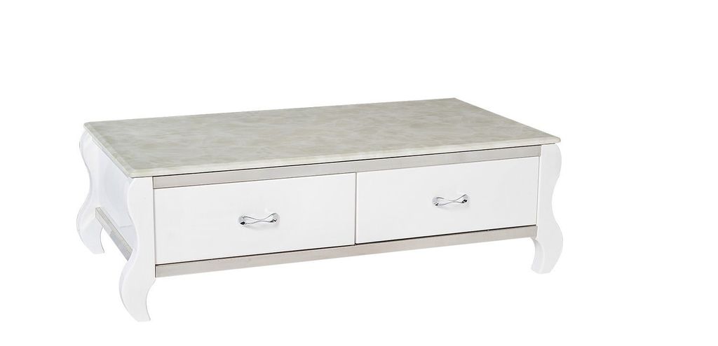 Bàn Sofa cao cấp chân gỗ tự nhiên kết hợp mặt đá nhân tạo và có 4 ngăn kéo (mỗi bên 2 ngăn kéo)