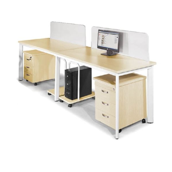 Cụm Bàn Làm Việc BCO12-2A là cụm bàn đơn mặt chữ nhật 2 chỗ, sử dụng chân sắt ống ô van 30x70mm được sơn tĩnh điện màu kem, không bao gồm vách ngăn chia mặt bàn. Mặt bàn sử dụng gỗ công nghiệp phủ Melamine sáng bóng.