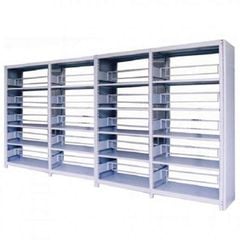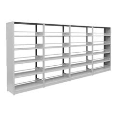 Giá thư viện 4 khoang sử dụng 2 mặt, có 5 tầng để tài liệu. Các đợt và thanh chắn có thể di động giúp điều chỉnh độ cao