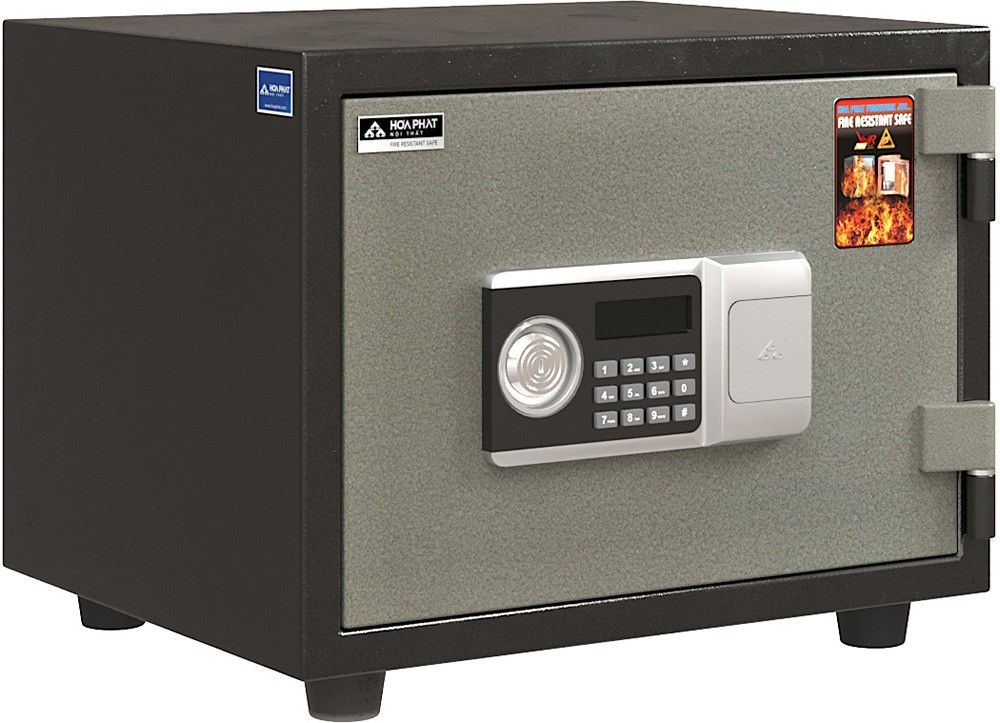 Đế chân bằng nhựa cố định. Két có tính năng chống cháy và bảo mật cao.