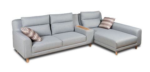 Bộ sofa góc bọc vải cao cấp, chân gỗ tự nhiên.