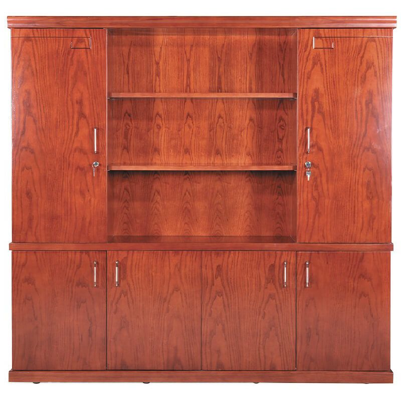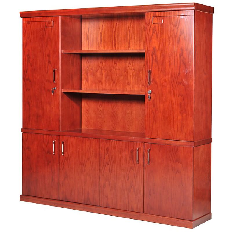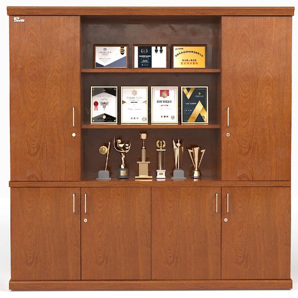 Tủ tài liệu 4 buồng, phía trên là khoang cánh dài treo áo và khoang giữa để đợt tài liệu. Phía dưới 4 cánh mở