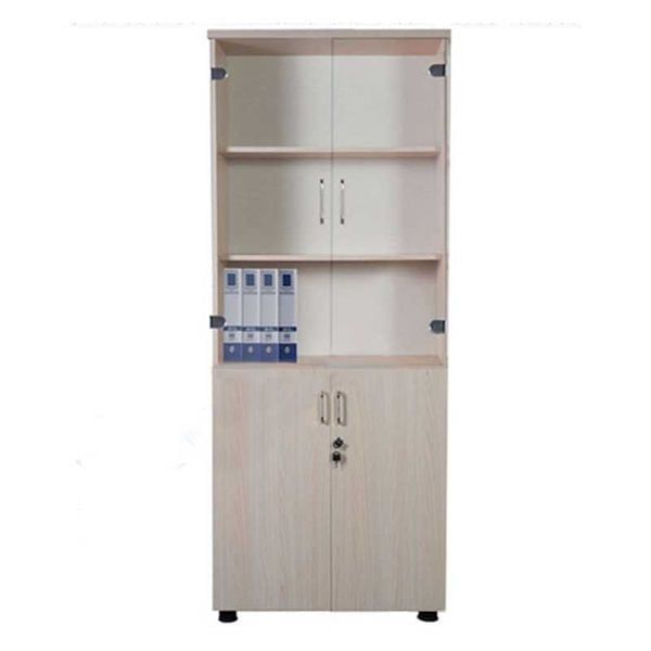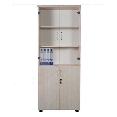 + Tủ tài liệu gỗ công nghiệp melamine có 2 buồng, phía trên là khoang cánh kính để tài liệu và khoang dưới là cánh gỗ mở