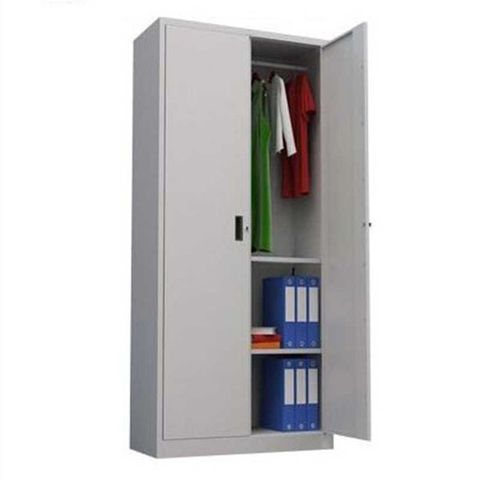 Tủ sắt sơn tĩnh điện gồm 2 khoang cánh mở, mỗi khoang có 2 đợt di động và một suốt treo quần áo.