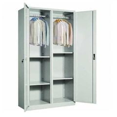 Tủ sắt sơn tĩnh điện gồm 2 khoang cánh mở, mỗi khoang có 2 đợt di động và một suốt treo quần áo.