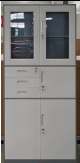 Tủ sắt sơn tĩnh điện 3 khoang: Khoang trên có 2 đợt di động và khung cánh kính lùa. Khoang thứ 2 có 1 cánh sắt mở va có 3 học kéo, khoang dưới có 2 cánh cửa mở.